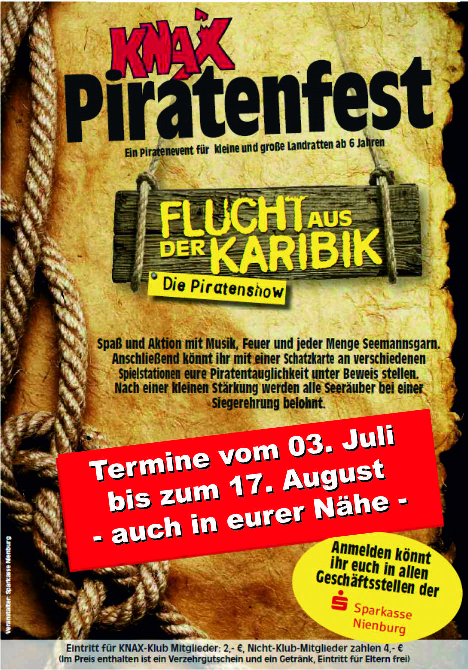 "FLUCHT AUS DER KARIBIK" beim KNAX-Piratenfest 2011Mit viel Spaß und Aktion könnt ihr in die Welt der Piraten eintauchen.